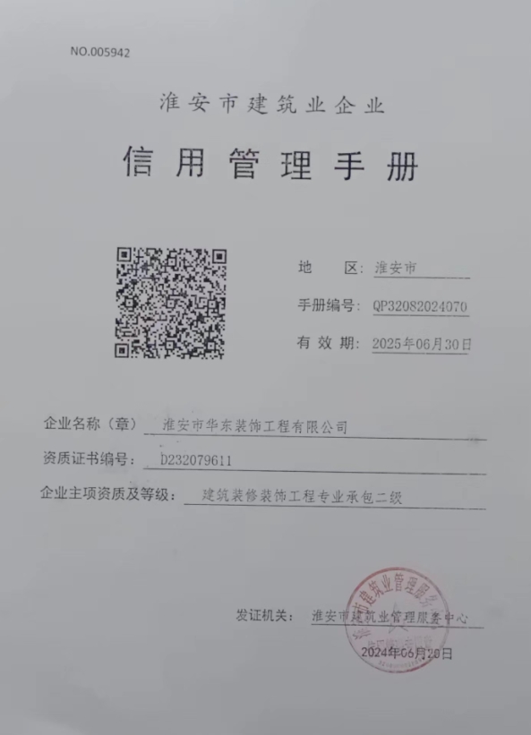 淮安市華東裝飾工程有限公司成立于2005年1月,企業(yè)性質(zhì)為民營(yíng)股份制企業(yè), 是一家管理,質(zhì)量保證體系嚴(yán)密的專(zhuān)業(yè)裝飾公司
