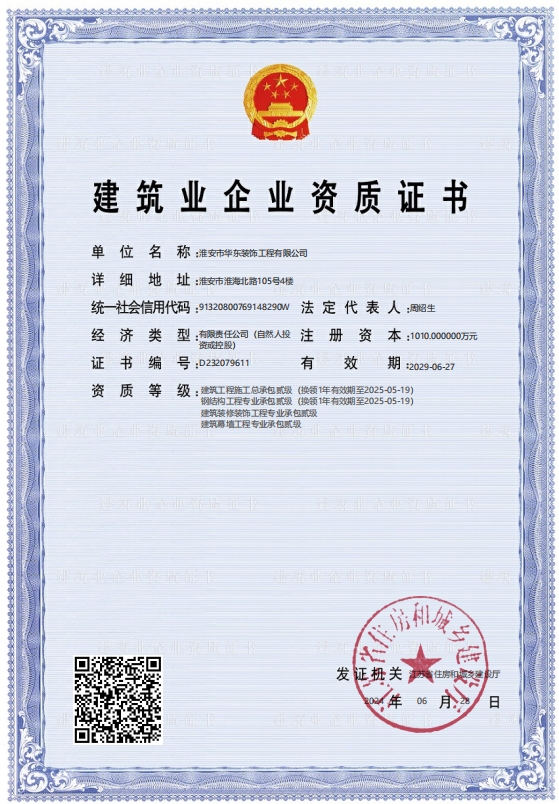 擁有建筑裝飾裝修專(zhuān)業(yè)承包二級(jí)資質(zhì);電子與智能化工程專(zhuān)業(yè)承包二級(jí)資質(zhì); 建筑幕墻專(zhuān)業(yè)承包二級(jí)資質(zhì)以及建筑工程施工總承包三級(jí)、市政公用工程施 工總承包三級(jí)、鋼結(jié)構(gòu)工程專(zhuān)業(yè)承包三級(jí)等施工資質(zhì),年產(chǎn)值近億元。 公司以從事室內(nèi)外裝飾及幕墻工程的設(shè)計(jì)與施工為主